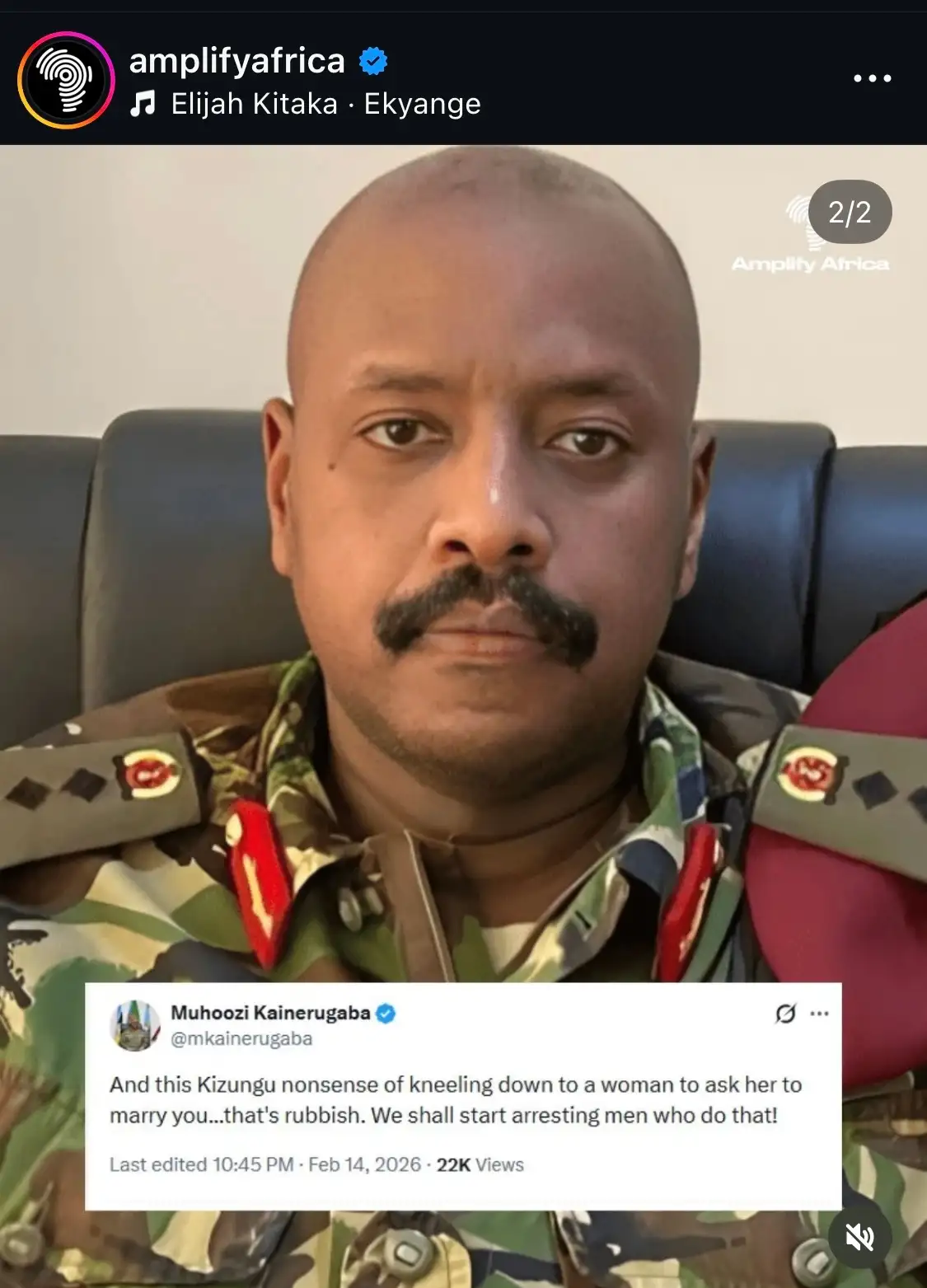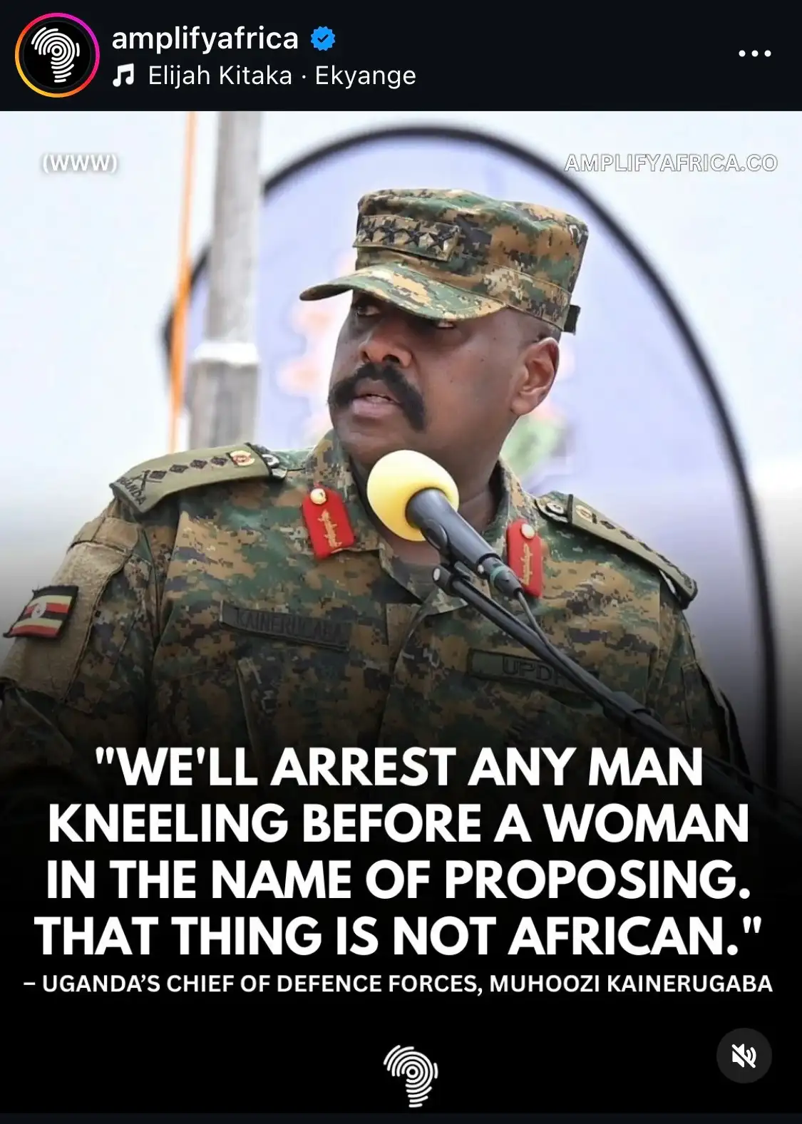 우간다 군 사령관님이 청혼한다고 여자 앞에 무릎 꿇는 남자는 체포하겠다고 발표함.
