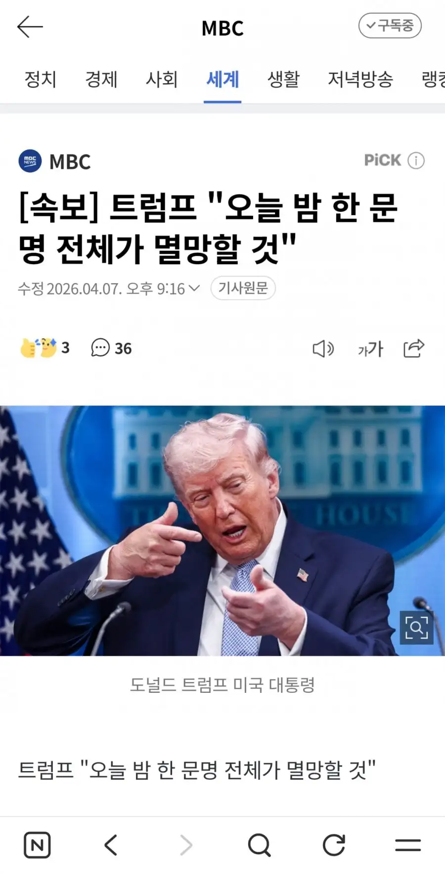 트럼프 "오늘 밤 한 문명 전체가 멸망할 것"