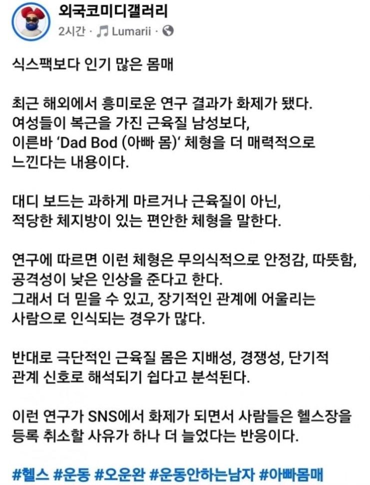 (저도 30대에 식스팩 생길 정도로 몸 한번 빡세게 만들어 놓고 그 뒤로 유지한다고 생각하면서 50대인 지금 까지도 주에 한번 PT 받고 따로 운동 2~3회 해서 겨우 겨우 근육돼지 체형 유지중인데 곰체형이 쉬운걸로 생각하다니 살짝 열받네요. )